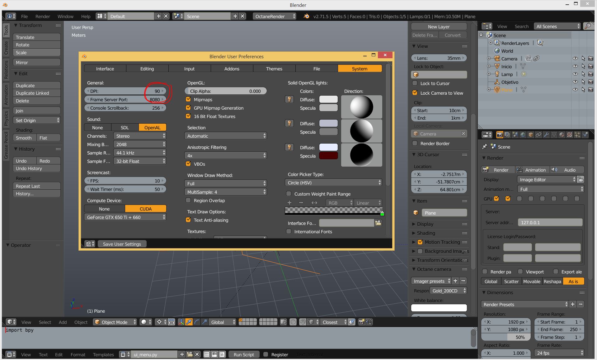 Muchas veces cuando instalamos Blender nos encontramos con una interfaz con una iconos y textos demasiados pequeños para nuestro gusto… A veces incluso hay iconos a los que es difícil apuntar…. Pues la solución es bien sencilla, Blender nos permite cambiar los puntos por pulgada de su resolución lo que esta muy pero que muy bien. En otros programas cuando nos encontramos con este inconveniente tenemos que recurrir a cambiar la resolución de Windows lo que provoca que algunos programas se vean bien mientras que otros dejen de verse bien.